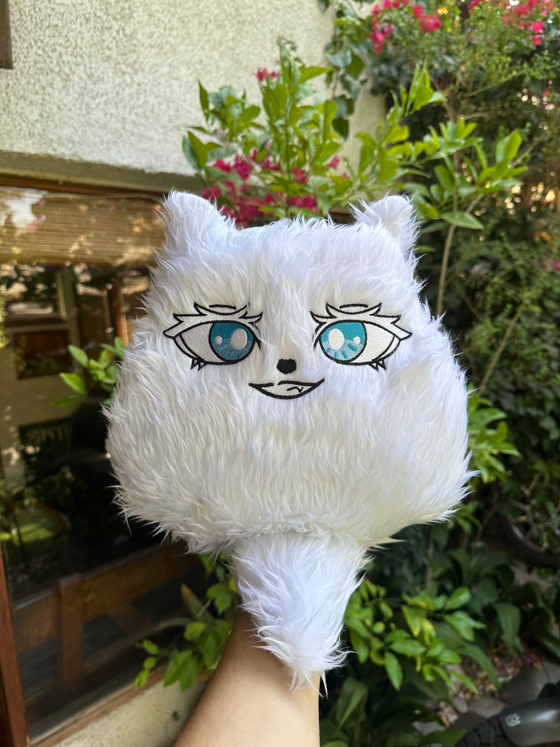 Este encantador peluche está inspirado en Gojo en su versión más dulce y felina, pero con un detalle especial que lo hace aún más único: sus hermosos ojos azules, que recuerdan la mirada característica de Gojo. Perfecto para los amantes de los peluches y los fans del personaje, este pequeño gatito se convertirá rápidamente en tu nuevo compañero inseparable.