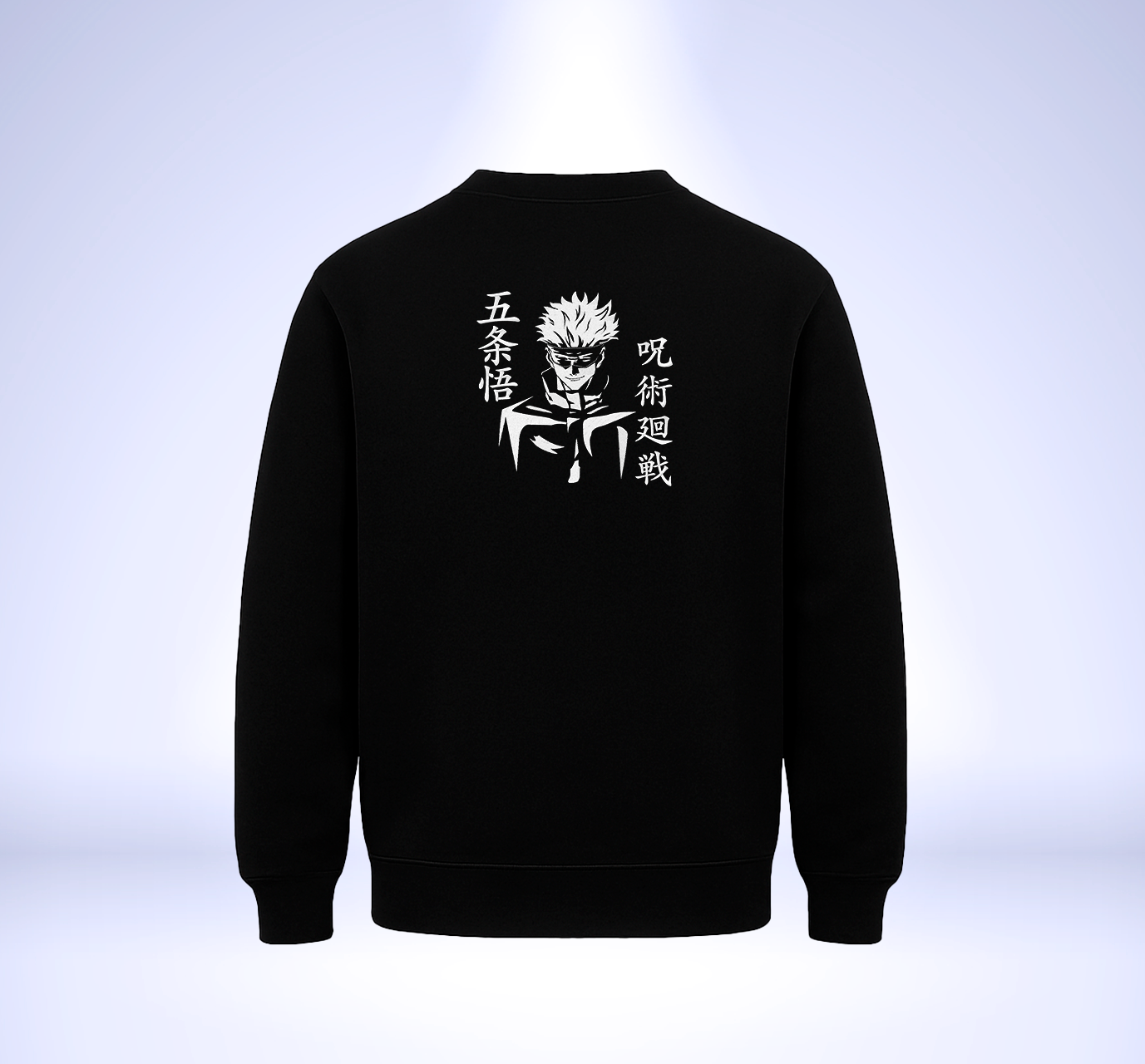 ¡Sumérgete en el mundo de Jujutsu Kaisen con nuestro polerón negro bordado, inspirado en el carismático y poderoso Satoru Gojo!
