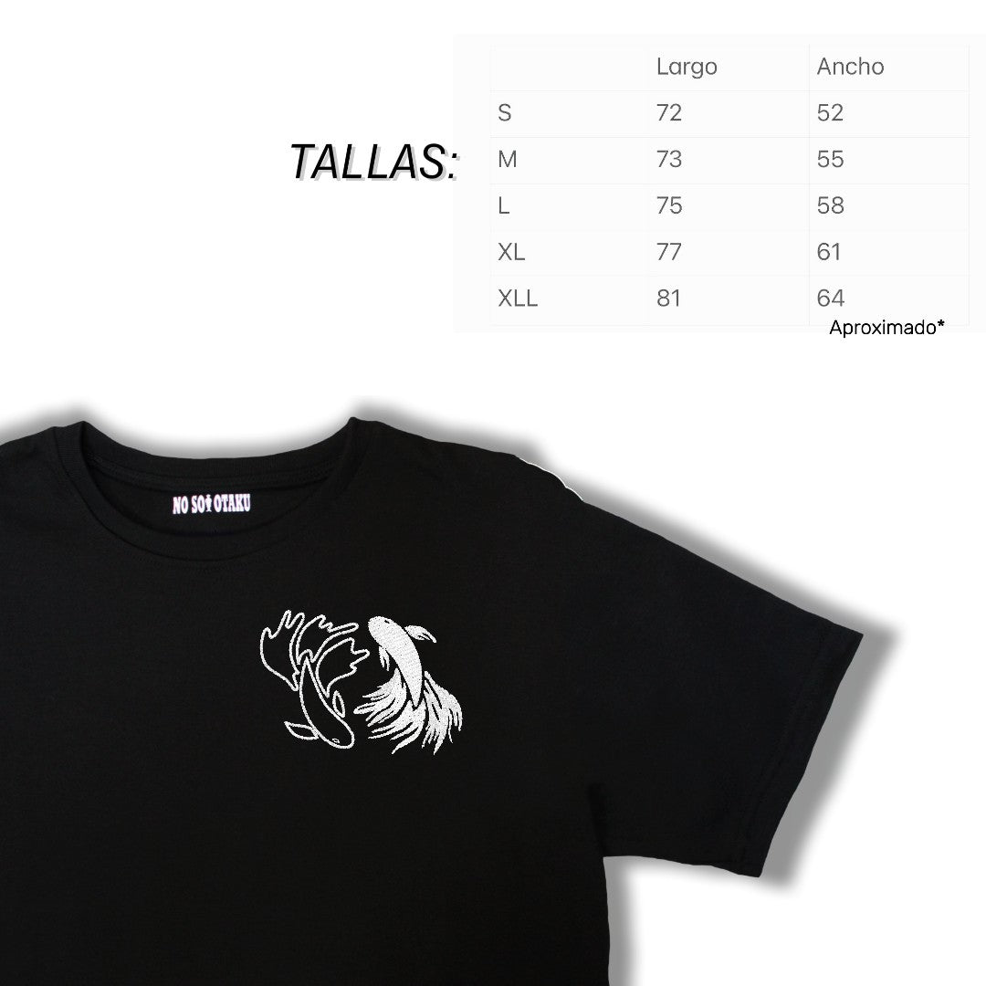 Sumérgete en el equilibrio místico con nuestra nueva polera de Gojo y Geto en forma de peces yin-yang.